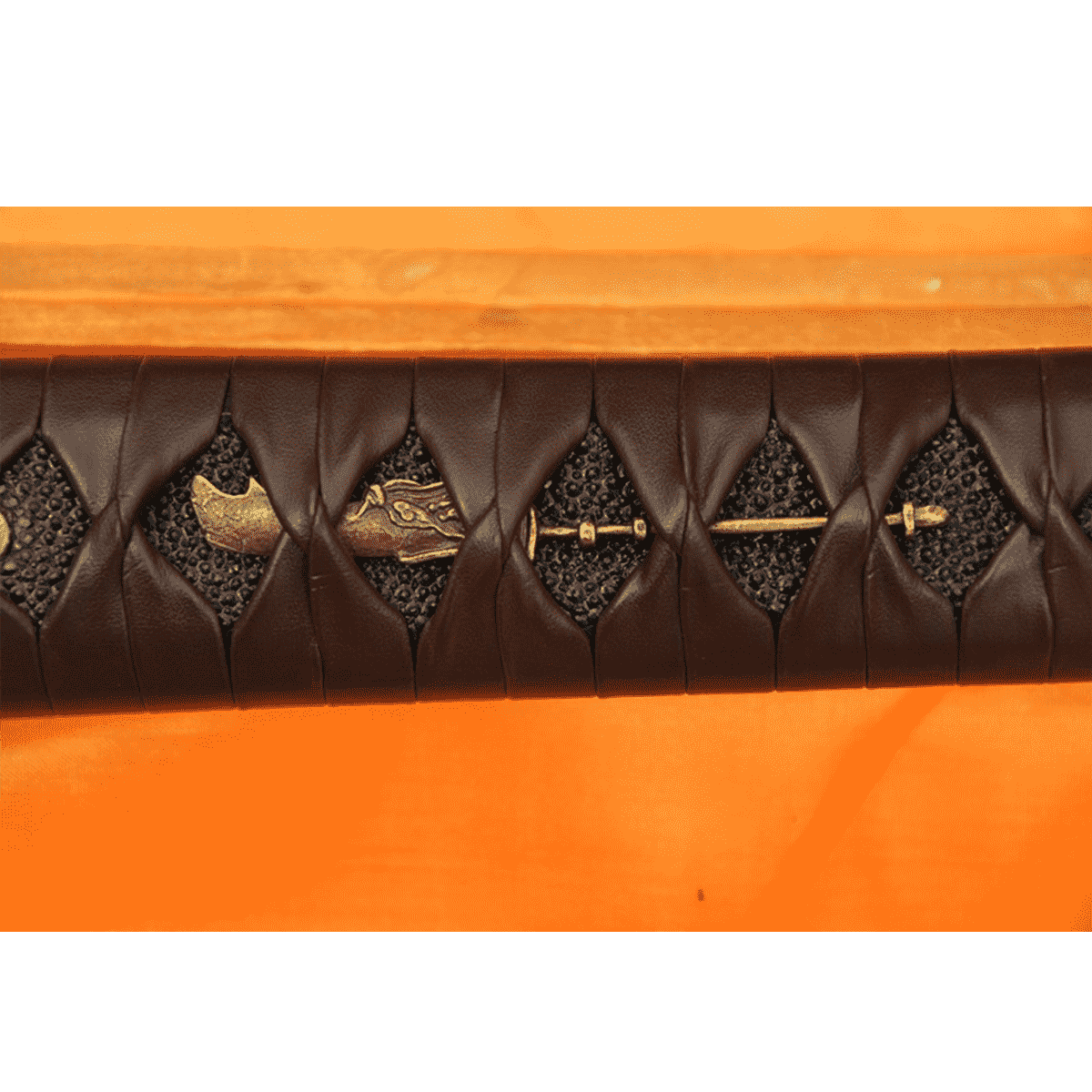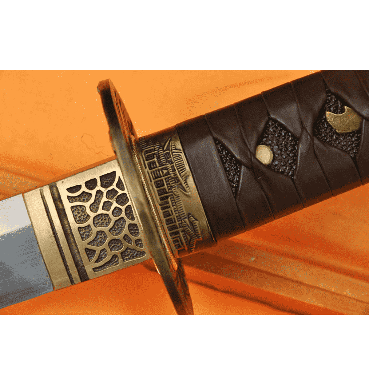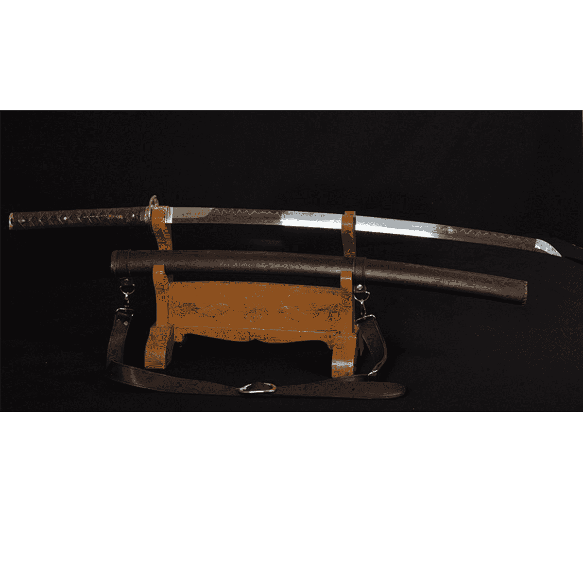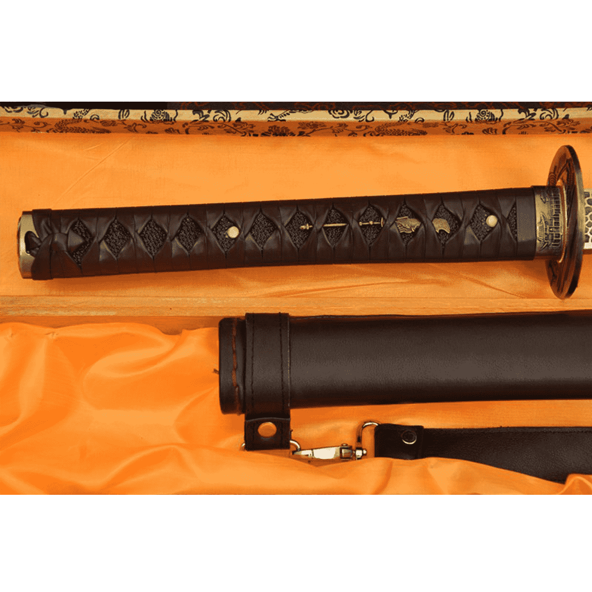 Saya (Scabbard): crafted from strong hardwood, tightly wrapped in brown leather-based and outfitted with an adjustable leather strap with metal buckles for comfort.