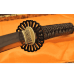 The full tang blade capabilities a chu-kissaki tip and no hiya, staying actual to standard Samurai format. The brass habaki and copper seppa in form tightly to relaxed the blade, at the equal time because the iron tsuba with a wheel motif gives character. The tsuka (take care of) is crafted from hardwood, wrapped with white actual ray pores and skin (samegawa) and bolstered with black leather-based combined with artificial silk ito, secured through double bamboo mekugi. Blackened iron menuki are set on every element for authenticity and grip.