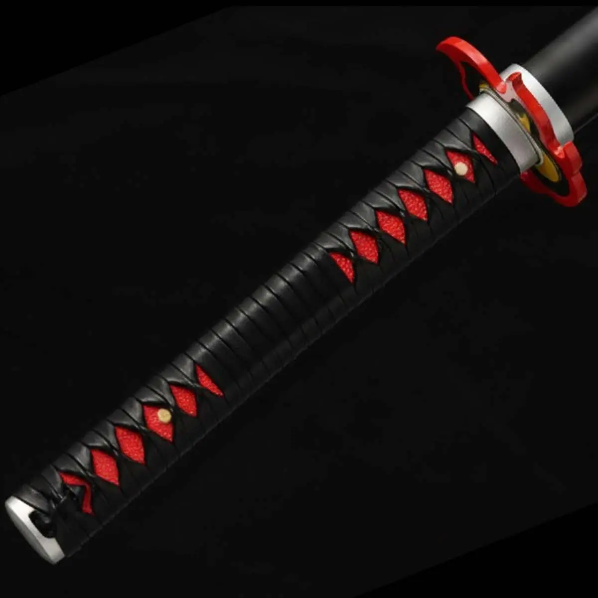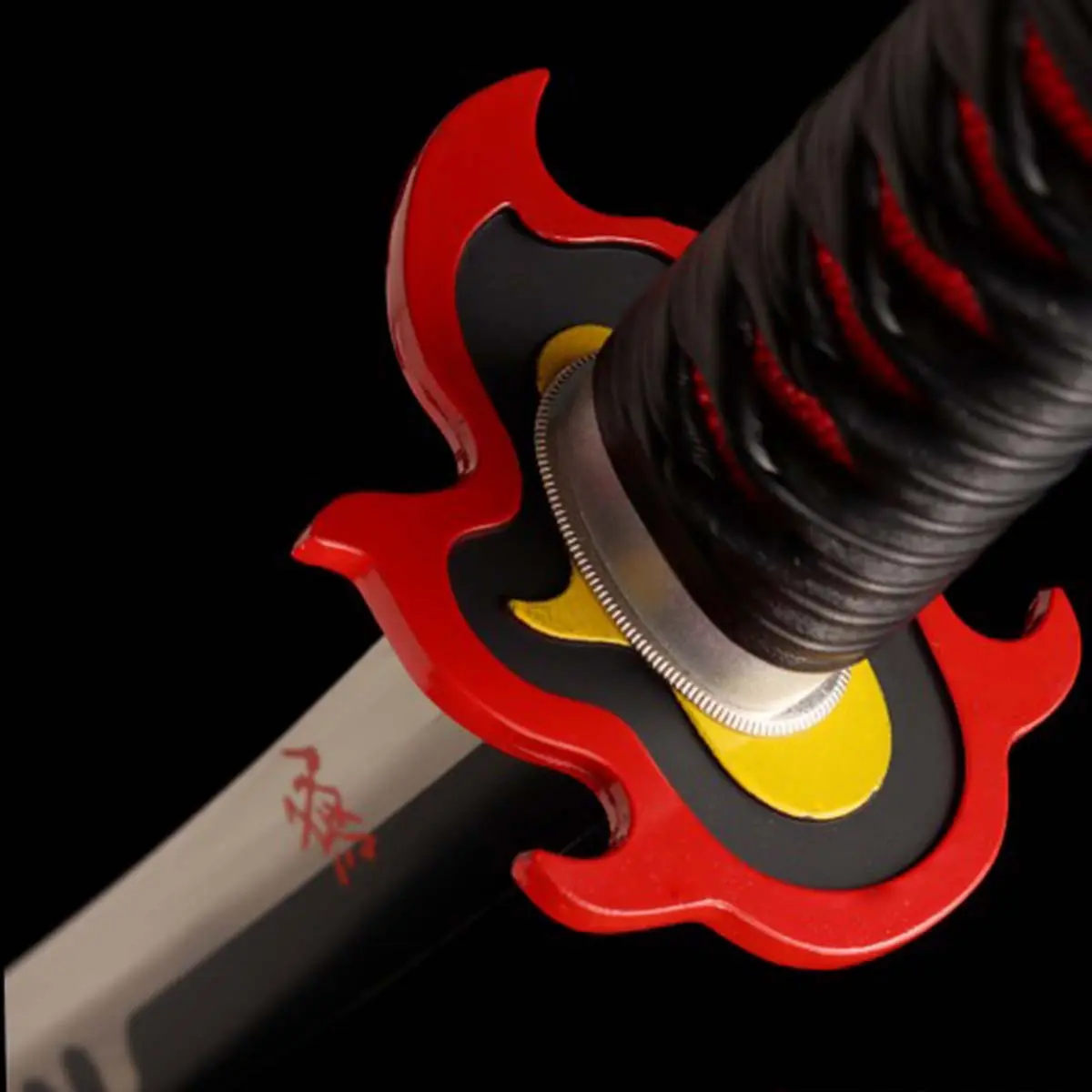 The katana features a flame-style tsuba, faithfully inspired by Tanjiro’s iconic Nichirin sword. Made from durable metal alloy, it provides both visual impact and practical hand protection.