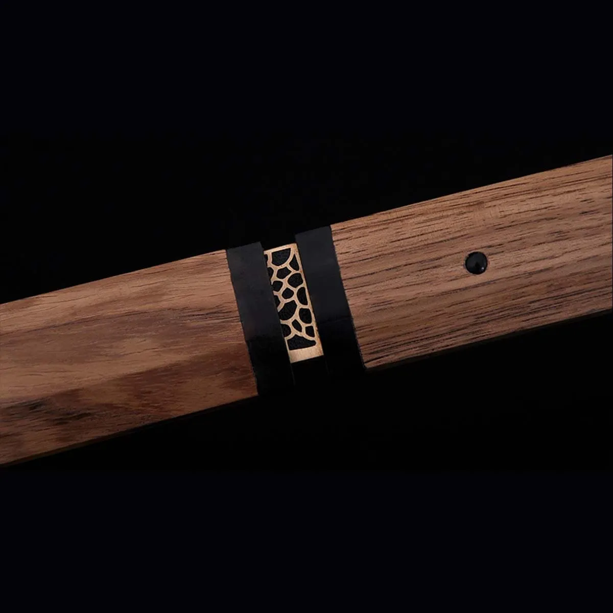 The saya (sheath) is also made from natural hard hualee wood, complementing the overall aesthetics of the sword.