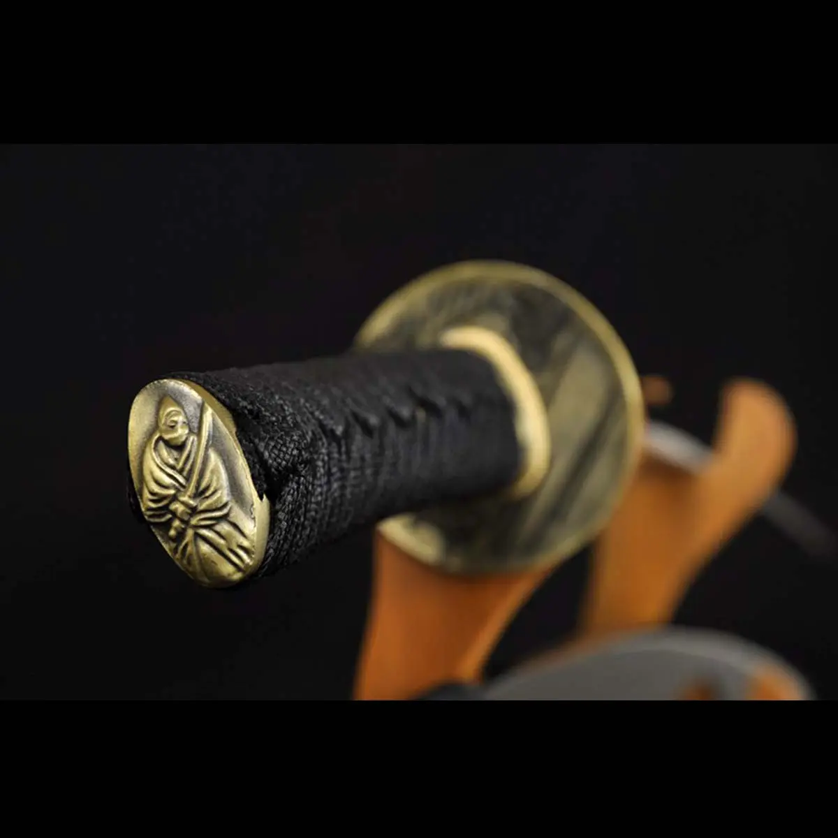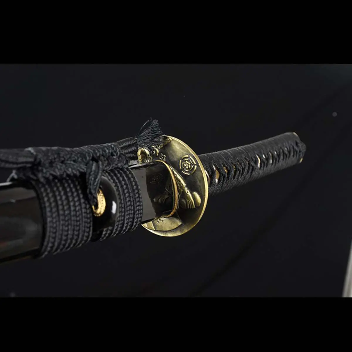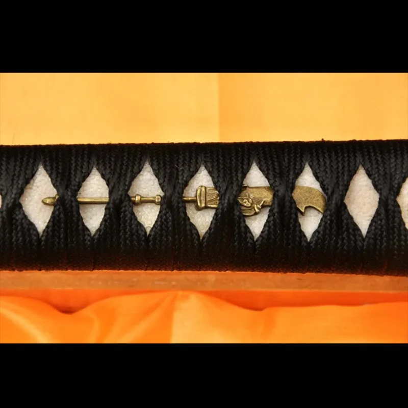The katana are made with care and precision by experienced swordsmiths. Every detail reflects traditional Japanese artistry—from the black lacquered hardwood saya (scabbard) to the silk-wrapped tsuka (handle) with genuine rayskin inlay (samegawa). The tight and even ito wrapping ensures a firm grip and an authentic look, while the alloy fittings add both durability and elegance.